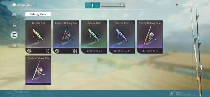 Người chơi có thể dễ dàng mua mồi và cần câu tại Fishing Store hoặc nhận chúng như phần thưởng khi hoàn thành nhiệm vụ.