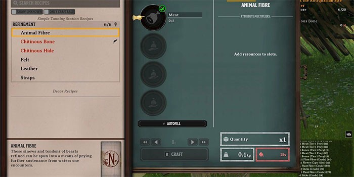 Các tài nguyên cần thiết để chế tạo cần câu bao gồm: 1 Bone Bundle, 1 Bone và 2 Animal Fiber.