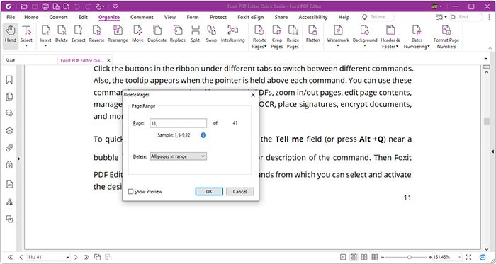Với phần mềm Foxit PDF Editor, việc loại bỏ các trang không mong muốn khỏi tài liệu PDF trở nên đơn giản, chỉ cần một thao tác click chuột vào mục Organize.
