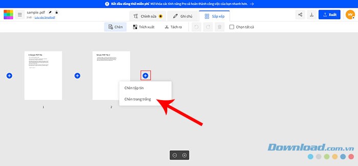 Bước 2: Nếu bạn chọn Chèn, hãy nhấn vào dấu cộng, sau đó chọn Thêm tệp tin hoặc Thêm trang trắng.