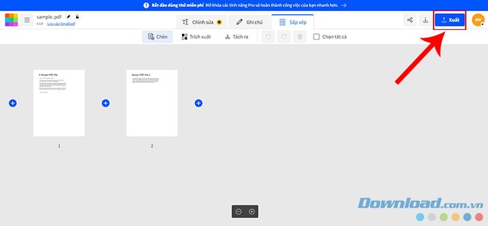 Bước 1: Sau khi hoàn tất quá trình chỉnh sửa file PDF, người dùng cần nhấn vào nút Xuất ở góc trên cùng bên phải.