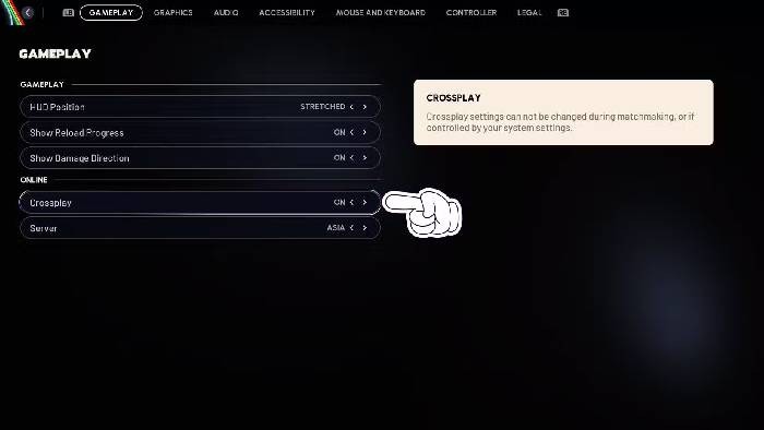 - Nếu Crossplay đang ở trạng thái tắt, hãy chuyển nó sang On.