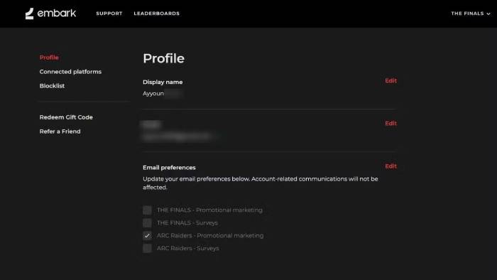 - Trong phần Display Name, bạn sẽ thấy Embark ID của mình, được hiển thị dưới dạng USERNAME#1234.
