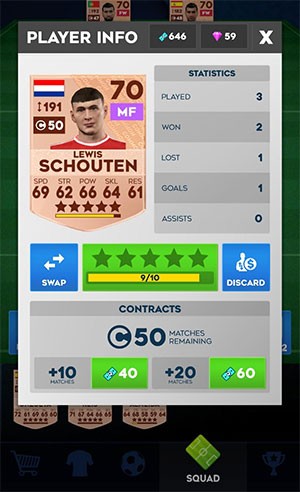 Mỗi thẻ cầu thủ mới nhận được sẽ đi kèm với một hợp đồng mặc định, có giá trị cho 50 trận đấu. Mỗi khi cầu thủ đó được đưa vào đội hình xuất phát, số lượng trận đấu còn lại trong hợp đồng sẽ giảm đi một. Để gia hạn hoặc kéo dài thời hạn hợp đồng của cầu thủ, người chơi có thể sử dụng Bux hoặc kích hoạt tính năng Contact Freeze, giúp ngăn chặn việc giảm số trận đấu sau mỗi trận đấu.