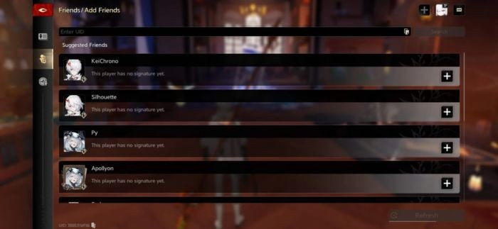 Mỗi người chơi sẽ sở hữu một UID (User ID) duy nhất, được sử dụng để tìm kiếm và thêm bạn bè. Để tìm UID của bản thân: