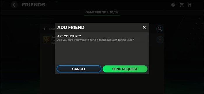- Khi tên người dùng của bạn bè xuất hiện, hãy chọn nút Add Friend tương ứng và nhấn vào Send Request để gửi yêu cầu kết bạn.