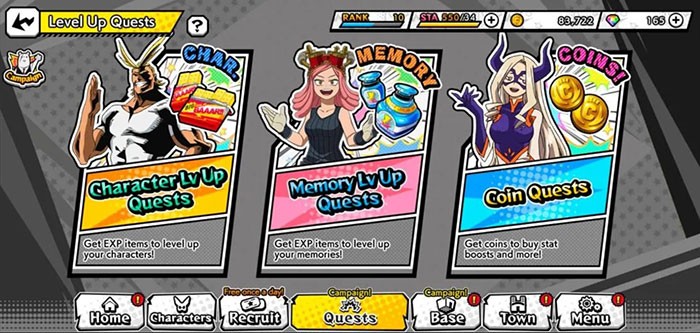 - Level Up Quest: Các nhiệm vụ chuyên biệt để thu thập vật phẩm, giúp nâng cấp nhân vật, ký ức và kỹ năng.