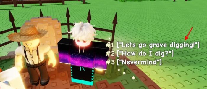 Khi giao tiếp với nhân vật không chơi được (NPC Scream-ven) tại khu vực diễn ra sự kiện, người chơi sẽ được cung cấp ba tùy chọn hội thoại khác nhau. Hãy lựa chọn phương án đầu tiên: Let’s go grave digging. Ngay lập tức, một bảng lưới kích thước 5x5, bao gồm tổng cộng 25 ô vuông được trang trí bằng hình bàn tay xương, sẽ xuất hiện trên giao diện.