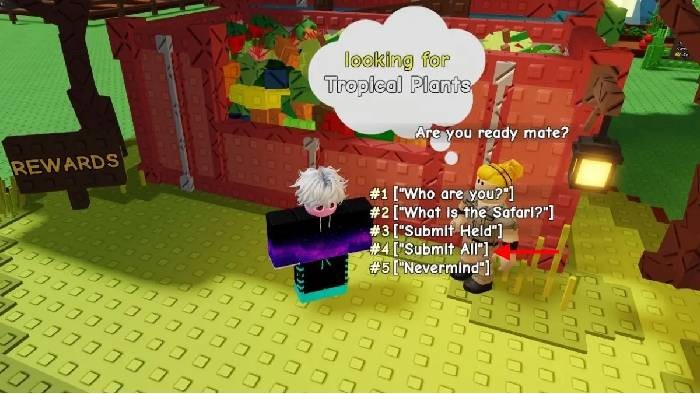 - Chú ý quan sát bong bóng suy nghĩ xuất hiện trên đầu NPC. Bong bóng này sẽ cho biết loại cây mà Safari Joyce đang yêu cầu.