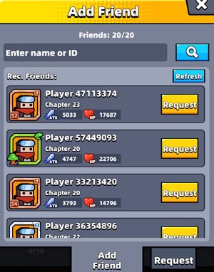 Việc kết nối với những người chơi mới thông qua danh sách ngẫu nhiên trở nên đơn giản khi bạn nhấn vào Refresh để cập nhật danh sách. Sau đó, chỉ cần chọn Request cạnh tên của người chơi bạn muốn gửi lời mời kết bạn.