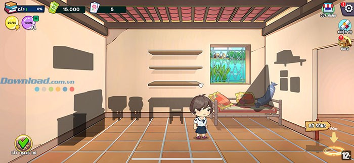 Bên cạnh đó, người chơi có thể tùy biến không gian sống của mình bằng cách trang trí phòng ốc. Truy cập mục "Trang trí phòng", lựa chọn các món đồ nội thất yêu thích như TV, tủ quần áo, bàn học,... và hoàn tất thanh toán để sở hữu.