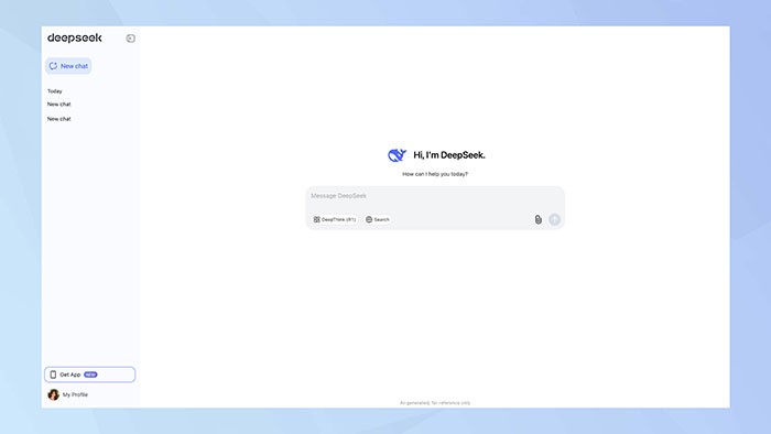 Sau khi xác minh tài khoản thành công, bạn sẽ được tự động chuyển đến giao diện chính của DeepSeek.