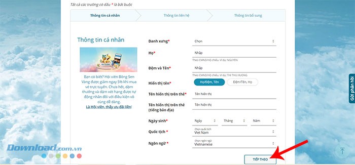 Hướng dẫn đăng ký Hội viên Bông Sen Vàng Lotusmiles