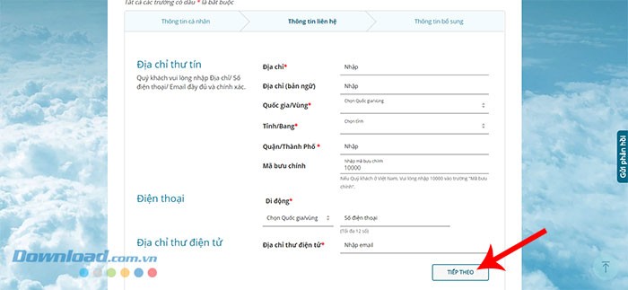 Sau khi đã cung cấp đầy đủ và chính xác các thông tin cá nhân, hãy nhấn vào nút Tiếp theo để chuyển sang bước tiếp theo.