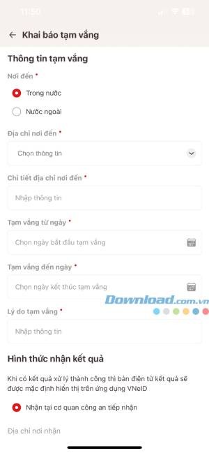 - Điền đầy đủ thông tin tạm vắng và lựa chọn phương thức nhận kết quả.