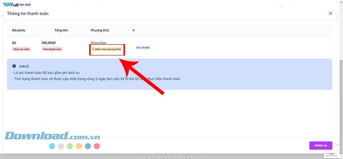 Bước 8: Trang Thông tin thanh toán sẽ được mở ra. Thí sinh cần chọn Nhấn chọn phương thức thanh toán phù hợp.