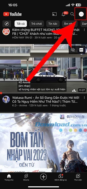 Bước 1: Khởi động ứng dụng Youtube trên thiết bị di động của bạn và chạm vào biểu tượng tài khoản, thường được đặt ở góc trên cùng bên phải màn hình.