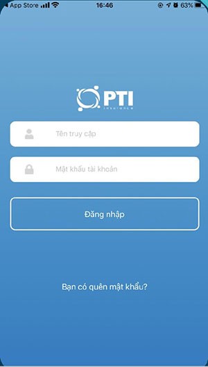 Bước 2: Sau khi quá trình tải xuống kết thúc, hãy mở ứng dụng Your PTI. Giao diện đăng nhập sẽ hiển thị, yêu cầu người dùng nhập Tên đăng nhập và Mật khẩu tài khoản.