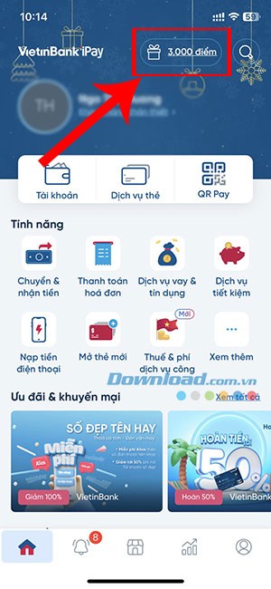 Hướng dẫn đổi điểm tích lũy trên VietinBank iPay