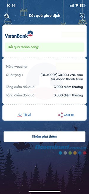 Sau khi quy đổi thành công, mã E-Voucher sẽ được gửi trực tiếp đến bạn qua tin nhắn SMS hoặc email đã đăng ký với VietinBank iPay.