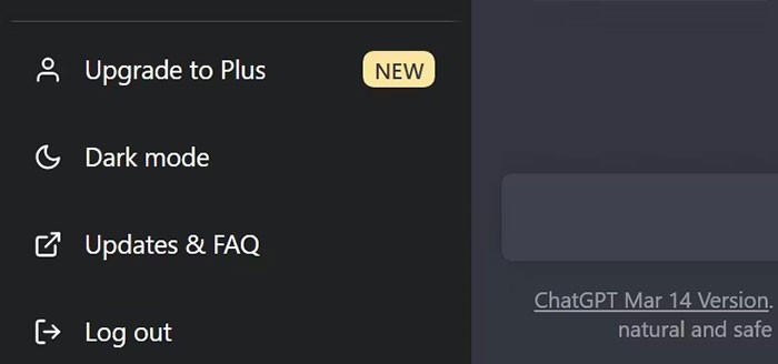 Bước 2: Tại khu vực cuối thanh điều hướng bên trái của giao diện chat, tìm và chọn mục Upgrade to Plus.