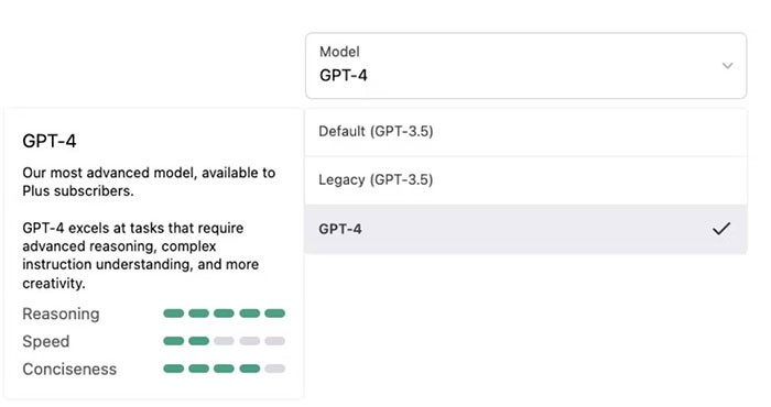 Những người dùng đã đăng ký gói trả phí có thể dễ dàng thay đổi mô hình GPT đang sử dụng từ GPT-3.5 (phiên bản cũ và mặc định) sang GPT-4 khi cần thiết. Việc này cho phép họ linh hoạt chuyển đổi giữa cả hai mô hình.