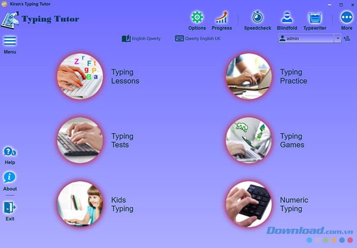 - Nội dung học tập bổ sung: Typing Games, Kids Typing, Numeric Typing, Speed Checker, Typewriter, Blindfold, Certification, Rapid Typing, Virtual Keyboard, TypingPad, Tutorials.