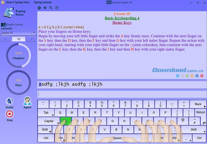Kiran's Typing Tutor là một công cụ hỗ trợ học tập và rèn luyện kỹ năng gõ phím bằng cả 10 ngón, đặc biệt hữu ích cho trẻ em và những ai mới bắt đầu làm quen với việc nhập liệu. Phần mềm này được trang bị nhiều tính năng, từ những bài học cơ bản đến nâng cao, giúp người dùng dễ dàng tiếp cận và thành thạo bàn phím máy tính, qua đó cải thiện tốc độ và độ chính xác khi gõ.