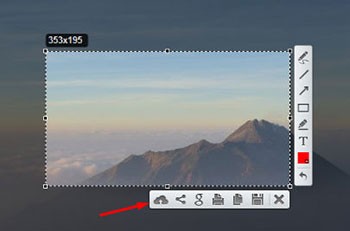 Sau khi đăng nhập thành công, bạn có thể tải lên bất kỳ ảnh chụp màn hình nào bằng cách nhấp vào biểu tượng đám mây nằm ngay bên dưới vùng chọn.