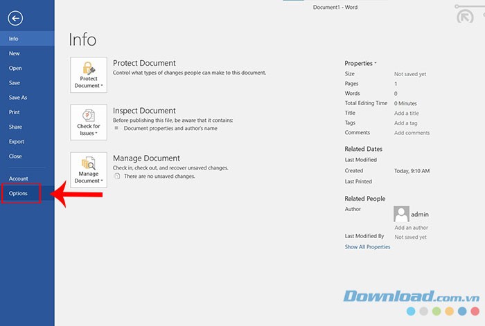 Bước 1: Truy cập vào menu File, sau đó chọn Options.