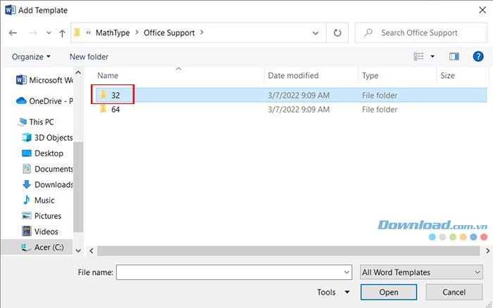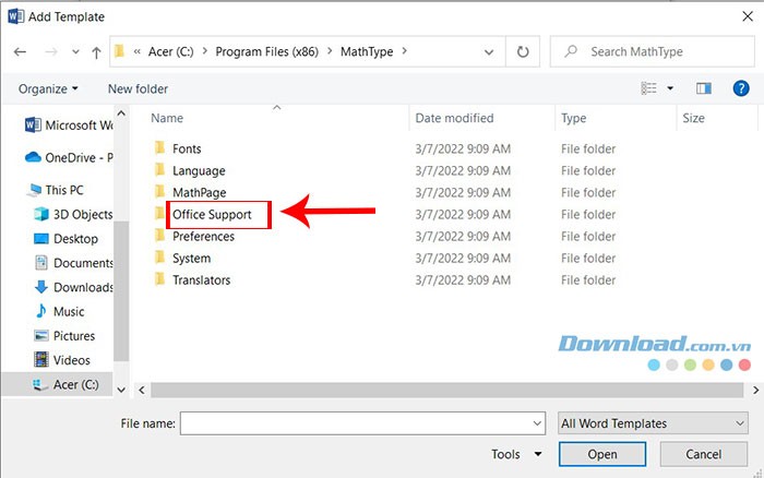 Tiếp theo, chọn thư mục MathType, sau đó chọn Office Support.