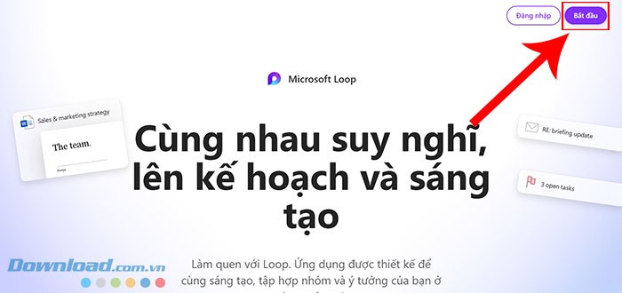 Bước 1: Truy cập trang Microsoft Loop. Sau đó, nhấp vào nút Bắt đầu được đặt ở góc trên bên phải màn hình.