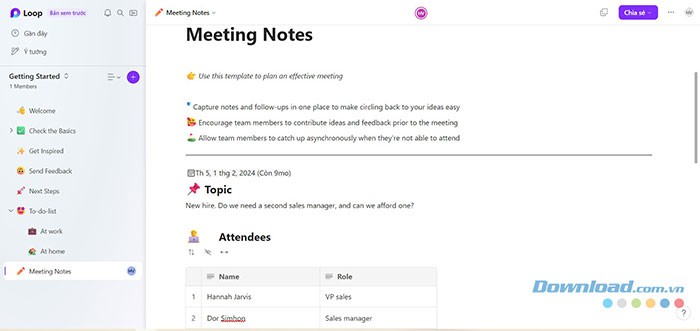 Microsoft Loop cung cấp một loạt các tính năng hữu ích, bao gồm tạo trang, tạo không gian làm việc, thêm thành viên, gán nhiệm vụ và theo dõi tiến độ. Việc làm quen với các tính năng này sẽ giúp bạn khai thác tối đa tiềm năng của ứng dụng.