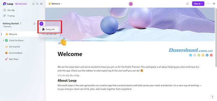 Bắt đầu trải nghiệm Microsoft Loop