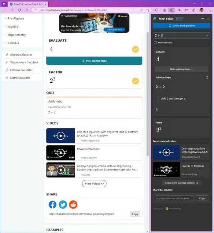 Các Tính Năng Bổ Sung Của Microsoft Math Solver