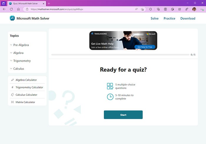 Ngoài khả năng giải toán trực tiếp, Microsoft Math Solver còn hỗ trợ người dùng thông qua việc cung cấp một loạt các tài liệu tham khảo hữu ích. Trong đó, công cụ tạo bài kiểm tra được thiết kế để giúp người học chuẩn bị một cách tốt nhất cho các kỳ thi sắp tới.