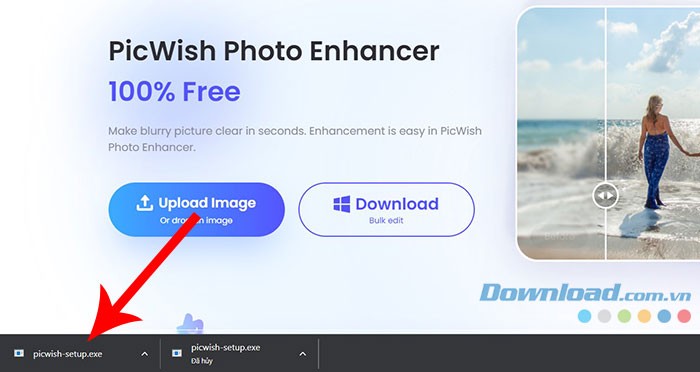 Bước 2: Sau khi quá trình tải xuống hoàn tất, hãy nhấp đúp vào file picwish-setup.exe để khởi động chương trình cài đặt.
