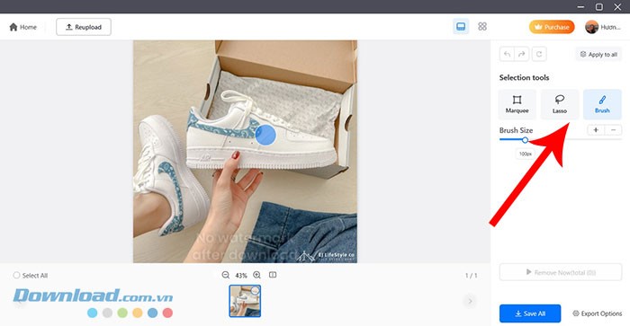 Bước 2: Để xác định đối tượng cần loại bỏ, bạn có thể lựa chọn một trong ba công cụ hỗ trợ: Marquee, Lasso hoặc Brush. Các công cụ này đều nằm ở phía bên phải giao diện.