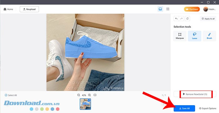 Bước 3: Sau khi đã khoanh vùng chính xác vật thể muốn xóa, hãy nhấn vào nút Remove Now để ứng dụng xử lý và hiển thị kết quả.