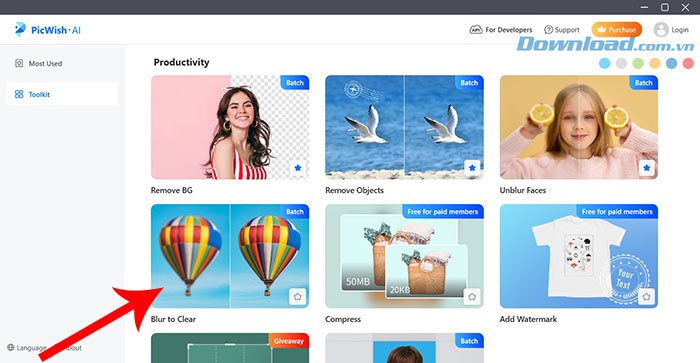Bước 1: Để bắt đầu, hãy truy cập trang web chính thức của PicWish. Sau đó, chọn và nhấn vào nút Download để tải xuống phiên bản tương ứng với hệ điều hành bạn đang sử dụng.