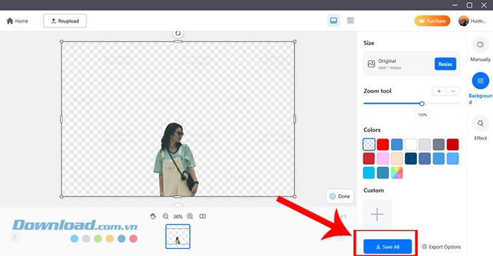 Bước 5: Quá trình xóa nền diễn ra rất nhanh chóng. Sau khi hoàn tất, bạn có thể nhấn vào Save All để lưu hình ảnh đã chỉnh sửa về thiết bị.