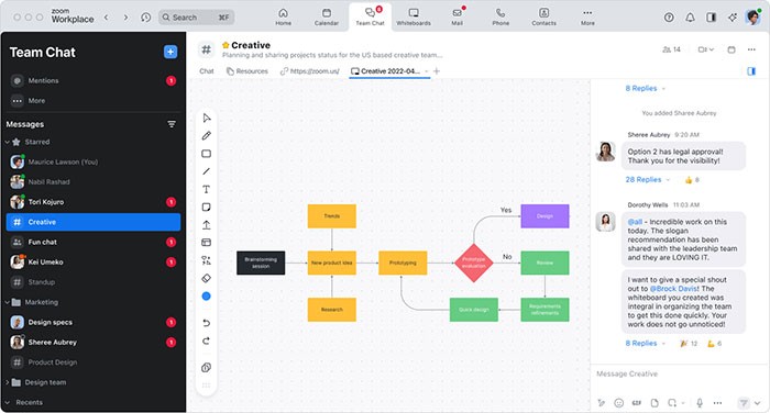 - Zoom Team Chat: Giao tiếp nhanh chóng qua tin nhắn, chia sẻ dữ liệu và trò chuyện nhóm.