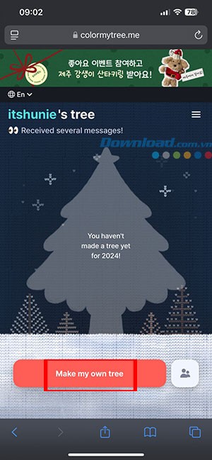 Bước 1: Sau khi đã thiết lập tài khoản cá nhân, hãy chọn Make my own tree để bắt đầu quá trình trang trí cây thông kỹ thuật số.