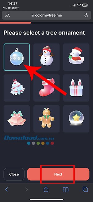 Bước 2: Chọn một vật trang trí mà bạn muốn treo lên cây và nhấn vào Next để tiếp tục.
