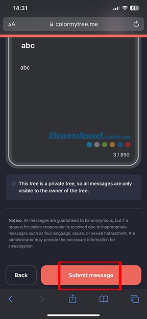 Bước 5: Cuối cùng, nhấn Submit message để gửi lời chúc đến người thân và bạn bè.