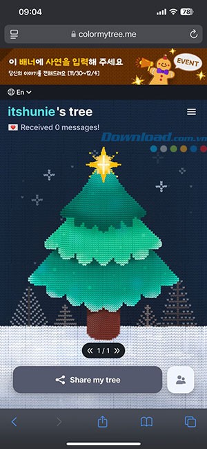 Bước 6: Khi cây thông đã hoàn thiện, nhấn vào nút Share my tree để sao chép đường dẫn và chia sẻ với bạn bè.