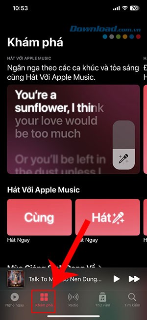 Bước 1: Mở ứng dụng Apple Music, di chuyển đến tab Khám phá và chọn banner quảng bá tính năng Hát Với Apple Music.