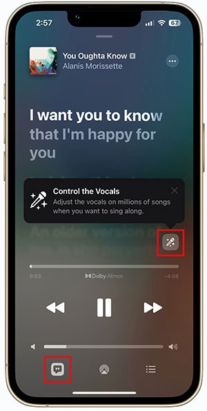 Điểm nổi bật khác của Apple Music Sing là thanh trượt điều khiển âm lượng giọng hát. Công cụ này cho phép người dùng giảm âm lượng của giọng ca sĩ gốc một cách linh hoạt.