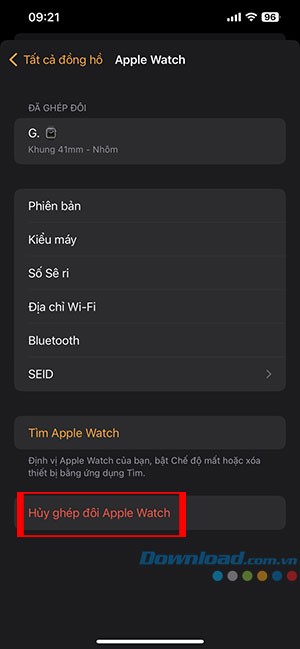 Hướng dẫn gỡ kết nối Apple Watch trực tiếp trên thiết bị
