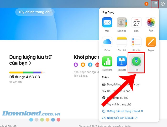 Bước 7: Đăng nhập bằng Apple ID và mật khẩu của bạn, sau đó nhấn vào biểu tượng Menu và chọn Tìm.